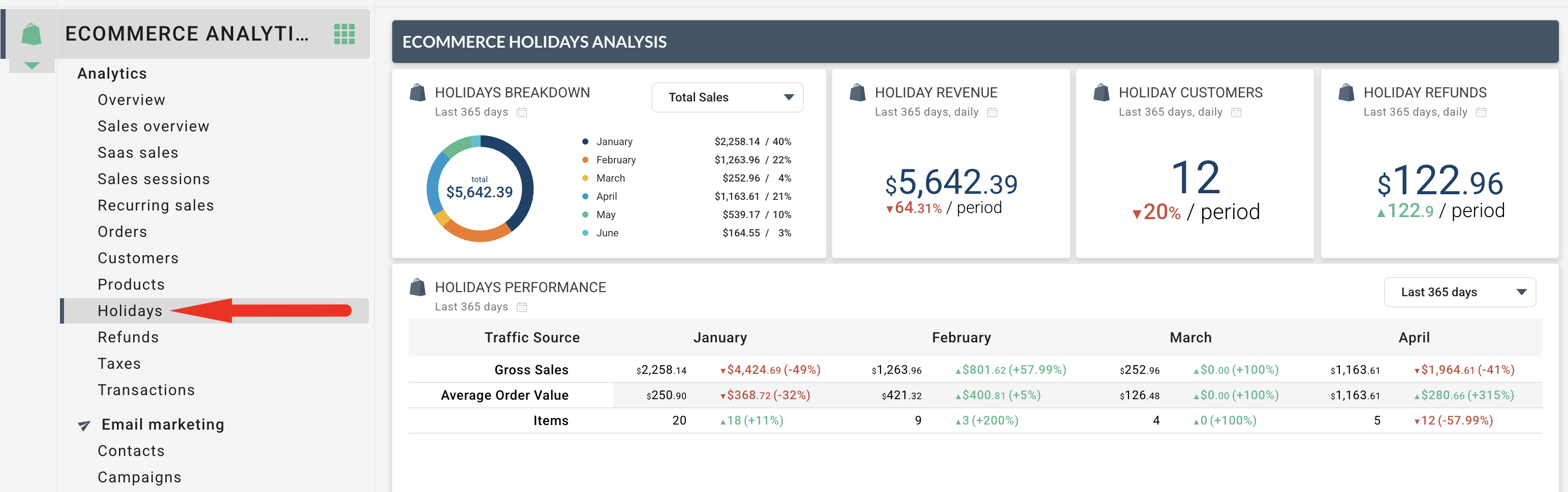 We have added a new set of advanced dashboards and reports that help you follow your sales performance during the holidays season.